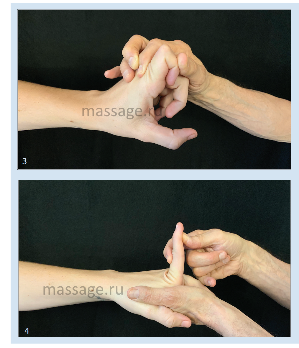 1. Расположите подушечку вашего большого пальца на дистальный сустав пальца клиента, а средний палец – на его пястно-фаланговый сустав.