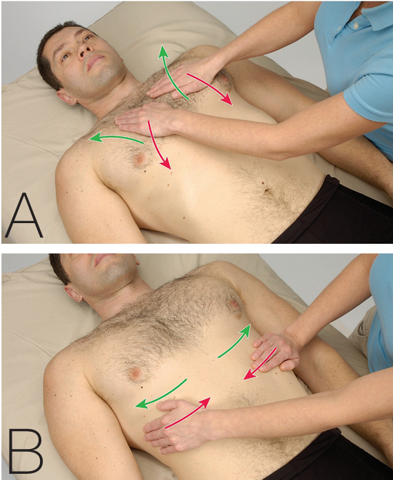 1.Стоя сбоку от клиента, положите обе руки на верхнюю часть груди (Рис.А).