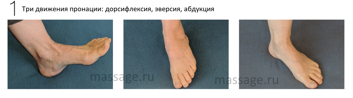 Диагональное движение при пронации гораздо легче визуализировать тогда, когда стопа не находится под