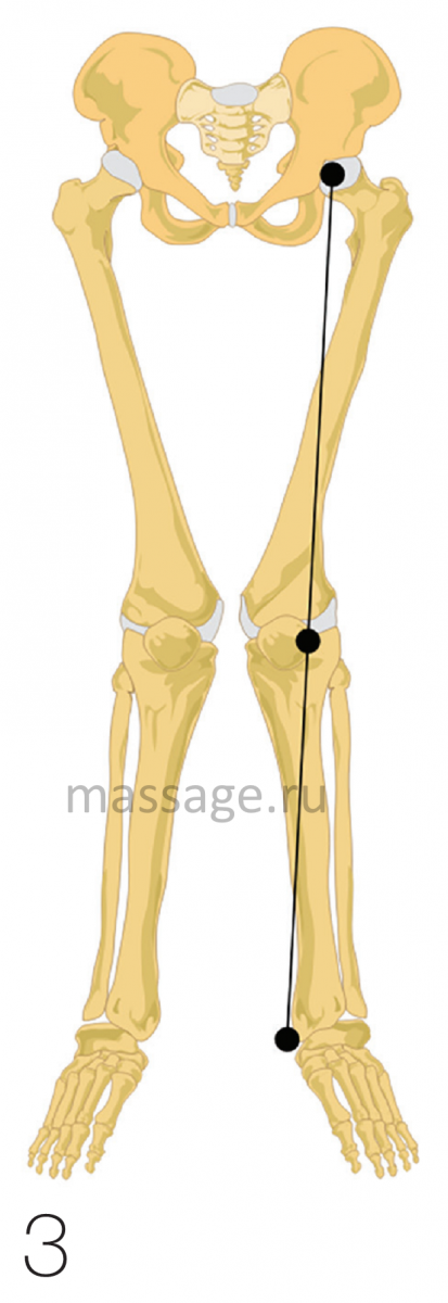 Плоскостопие – не единственное биомеханическое нарушение, ведущее к гиперпронации стопы. Далее следует поговорить о проблемах с коленом. Деформация коленного сустава с образованием угла между голенью и бедром, открытого кнаружи, (genu valgum), или вальгусная деформация коленных суставов, также приводят к неправильному распределению нагрузки веса тела по нижним конечностям (Рис.3).