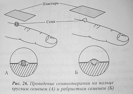 В зависимости от преследуемых целей и характера заболевания время аппликации семян колеблется от нескольких часов до одних суток. Если су-джок терапию необходимо продолжить, следует заменить семена на новые, а использованные выбросить. Удобно (особенно при лечении детей) прикреплять семена на ночь.