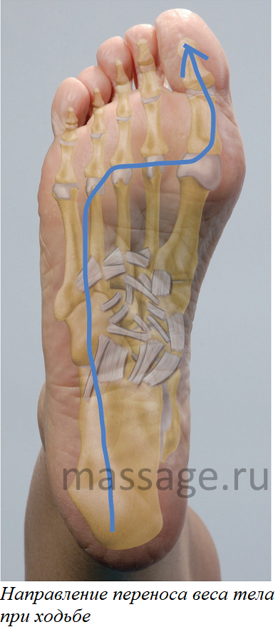 Это изменение скорости движения чрезвычайно важно для обеспечения правильной механики ходьбы. При отталкивании от земли или в конечной фазе цикла ходьбы вес тела перемещается с латеральной на медиальную часть стопы на подушечки стоп. Сильные мышцы большого пальца обеспечивают опору для отталкивания от опоры и начала следующей фазы.