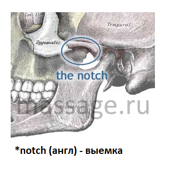 Эта выемка располагается на нижней части скуловой кости, найти её довольно просто и, кроме того, её форма просто идеально подходит для работы большим пальцем или кончиками других пальцев. Если вы уверенно надавите на эту точку внутрь и вверх своим большим пальцем, вы получите весьма приятные ощущения (конечно, если у вас нет никаких патологий этой мышцы).