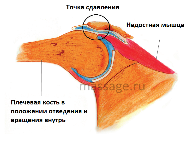 Постоянные столкновения большого бугорка плечевой кости и акромиального отростка приводят к развитию импиджмент-синдрома, различным нарушениям функционирования вращательной манжеты плеча и всех структур, относящихся к данной кинетической цепи – от шеи до локтей, запястий и рук.