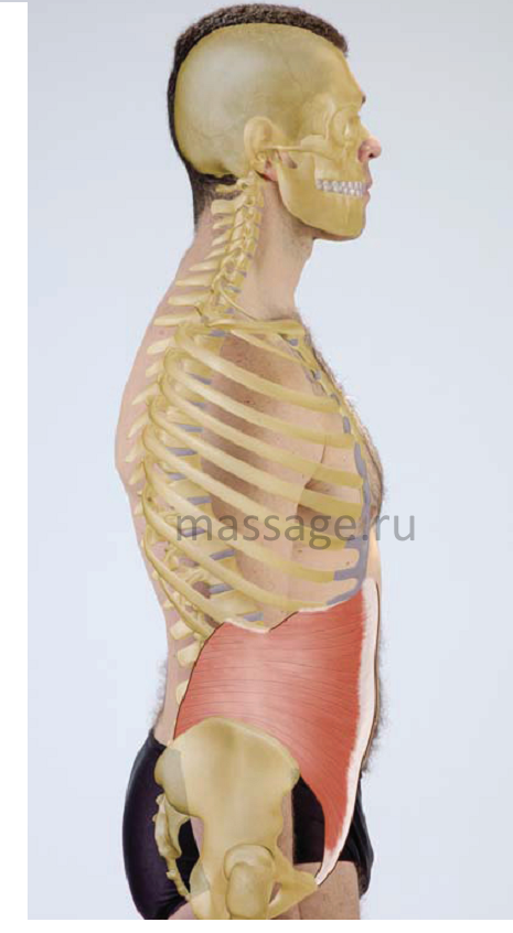 Для наклона вбок необходимо одновременное сокращение внутренней и наружной косых мышц живота с одной стороны корпуса. Следовательно, внутренняя и наружная косые мышцы живота с правой стороны, сокращаясь, наклоняют корпус вправо, а те же мышцы с левой стороны наклоняют корпус влево.
