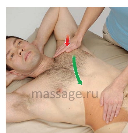 1. Встаньте сбоку от клиента к абдоминальной области и определите месторасположение последнего ребра ладонью.