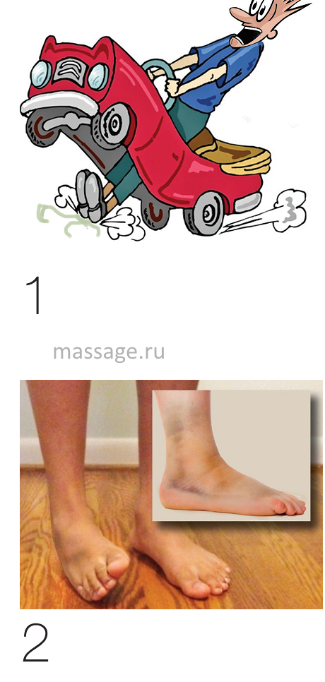 На рис.2 вы можете увидеть клиента, страдавшего от растяжения связок голеностопного сустава второй степени, вследствие падения с лошади. Травма была получена 8 месяцев назад. Физиотерапевт направил его ко мне, сообщив, что до этого с ним долгое время работал ортопед, и связки полностью восстановились. Несмотря на восстановление связок, этот клиент продолжал жаловаться на постоянные спазмы в ноге и бёдрах. Наблюдая за его походкой, я заметил, что он хромает. Его врач сказал ему, что хромота просто вошла в привычку, и скоро это пройдёт. Но я знал, что это не всегда является правдой.