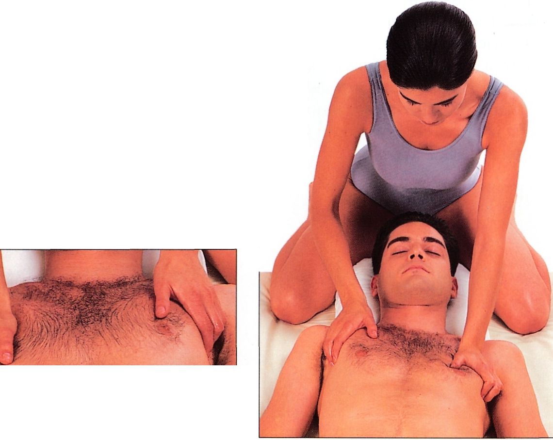 Движения лопаток и рук зависят от мышц грудной клетки. Когда снято физическое напряжение грудных мышц, у массируемого возникает ощущение, что плечи у него стали шире. Причиной напряжения в этой части тела может быть стресс, и, расслабив мышцы, вы снимете ощущение подавленности.