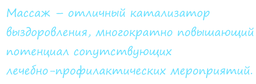 Массаж – отличный катализатор выздоровления, многократно повышающий потенциал сопутствующих лечебно-профилактических мероприятий.