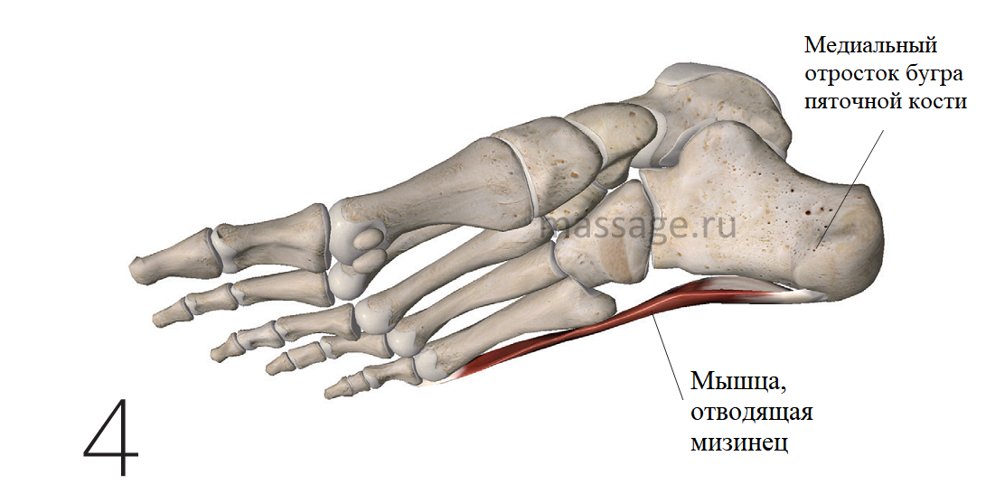 Второе место потенциального защемления расположено по медиальному бугорку пяточной кости, где нерв может быть защемлен костью или остеофитами, костными шпорами, появляющимися на передней поверхности пяточной кости. (Рис.4)