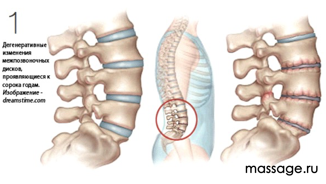 У молодых людей гелеобразные пульпозные ядра и фиброзные кольца дисков хорошо гидратированные, прочные и гибкие. Но уже к сорока годам в межпозвонковых дисках проявляются дегенеративные изменения – раньше, чем в любой другой соединительной ткани. (Рис. 1)