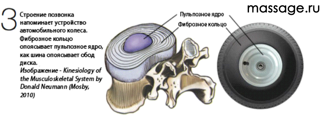 Зачастую, говоря о межпозвонковых дисках, большинство людей представляет себе фиброзные кольца как круглые цельные кольцевые образования, поддерживающие наполненные жидкостью ядра. Однако множество фиброзных колец не замкнуты и не являются круглыми. Мать- природа тщательно продумала строение передней и боковой части диска, оставив заднюю часть гораздо тоньше для обеспечения поглощения жидкости в ходе повседневной деятельности и сна.