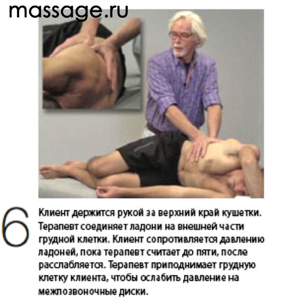 Аккуратное выполнение гиперэкстензий, таких как поза кобры в йоге, зачастую помогает при защемлении нервов задней части диска. Но известны случаи, когда больший прогресс в лечении появлялся при мануальной терапии в позе зародыша, представленной на рис. 4,5,6. Уже через несколько сеансов наблюдается улучшение поглощения жидкости и прогресс в восстановлении прежнего роста.