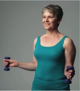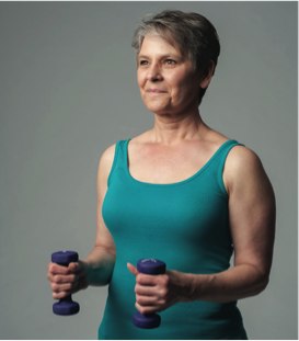 • Возьмите в руки гантели, согните локти, держите гантели на уровне талии.