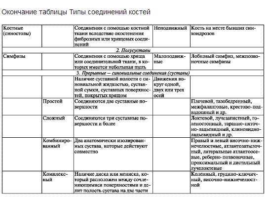 Кости могут соединяться одна с другой при помощи непрерывного соединения, когда щели между ними нет. Такое соединение называется синартрозом (synartrosis). Прерывное соединение, при котором между сочленяющимися костями находится полость и образуется сустав (articulatio), называется диартрозом, или синовиальным соединением (juncturae synovialis).