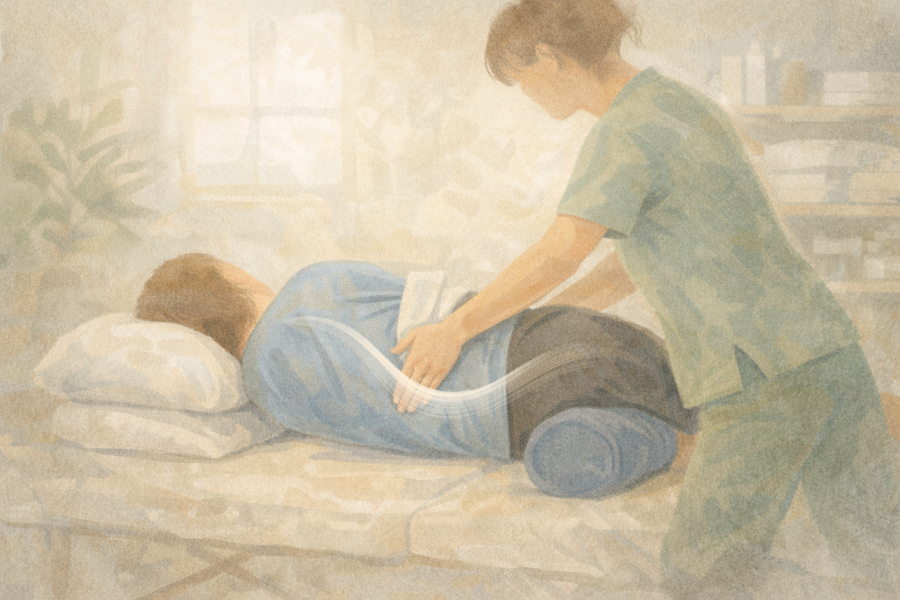 Многие массажисты и мануальные терапевты умеют и любят работать с клиентами в положении лежа на боку. Ряд школ мануальной терапии, например, школа небезызвестного Эрика Делтона, разрабатывала полноценные новаторские мануальные приемы для этой позиции. Такие техники позволяют специалисту не просто временно снять боль и напряжение, но и в дальнейшем добиться глубоких, стойких результатов терапии. Кроме того, положение на боку зачастую намного комфортнее для клиента. К слову, такое положение клиента оптимизирует биомеханику движений самого массажиста и дает возможность производить движения более динамично и точно.