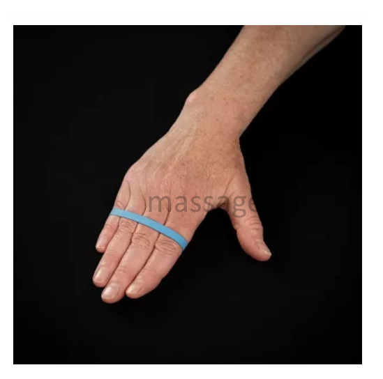 - Отведение с резинкой для указательного пальца. Для дополнительной нагрузки наденьте резиновую ленту на основную фалангу указательного пальца. Выполняйте плавные движения: отведение (в сторону от среднего пальца) и последующее приведение (Изображения 15 и 16).