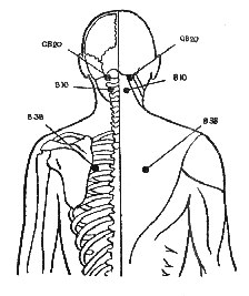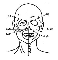 Точка TW 17 (“заслон от ветра”). Симметричная точка, находится за мочкой уха (рис. 1). Снимает боли в ушах, в челюсти, в горле, а также лицевые спазмы. Используется при лечении паротита.