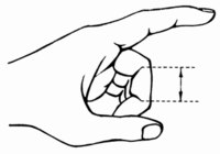 Ширина большого пальца левой руки по линии, проходящей через угол ногтевого ложа. (Рис. 2)
